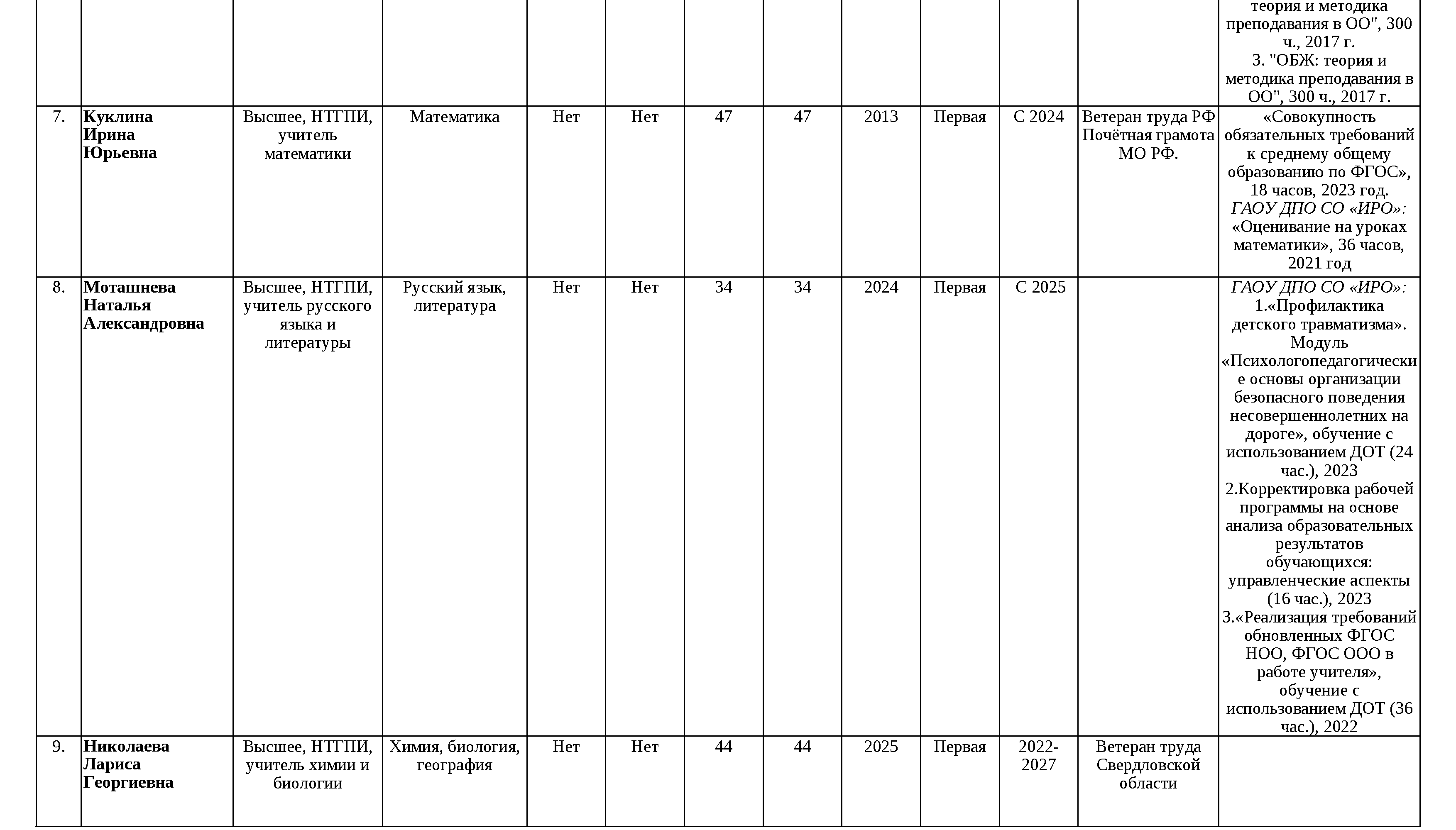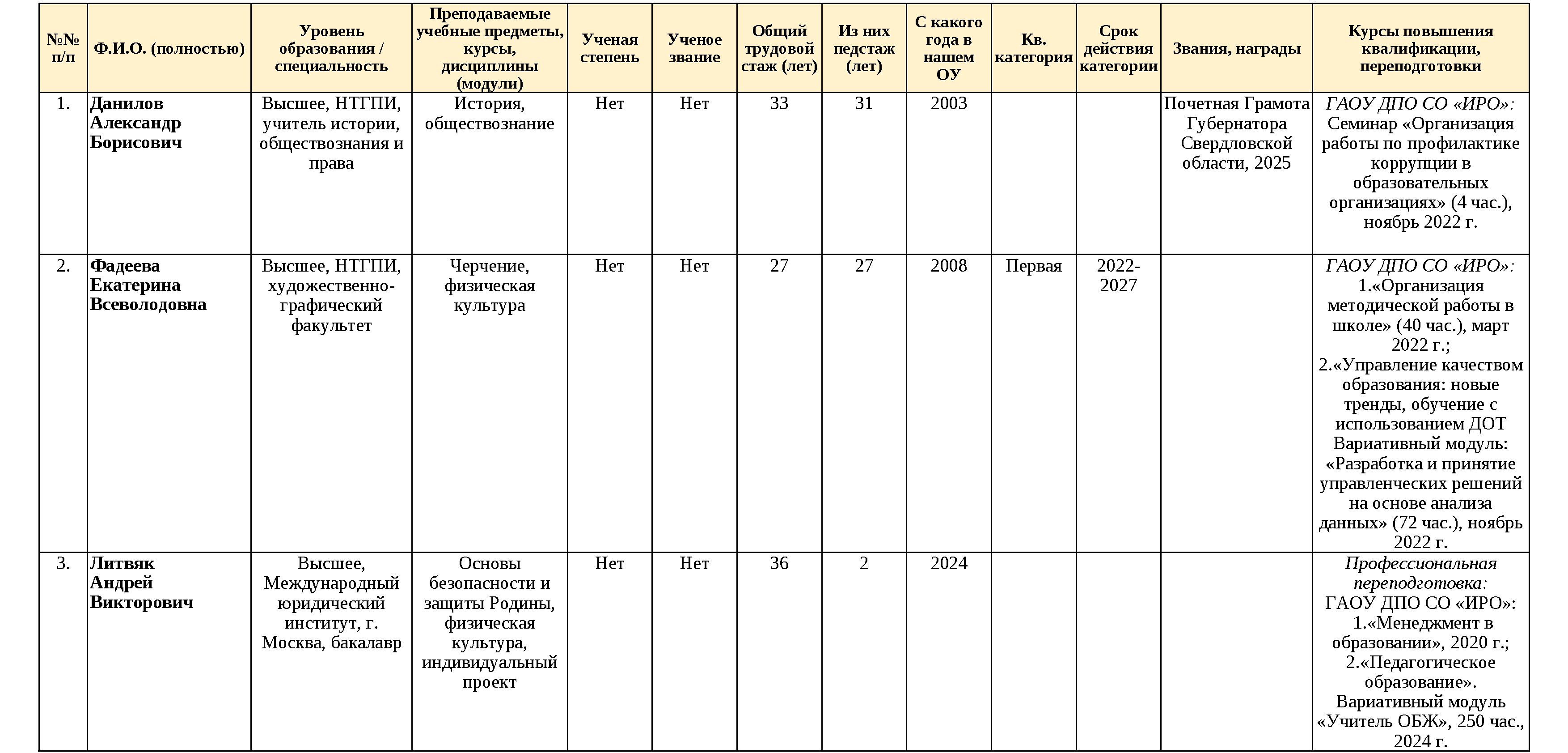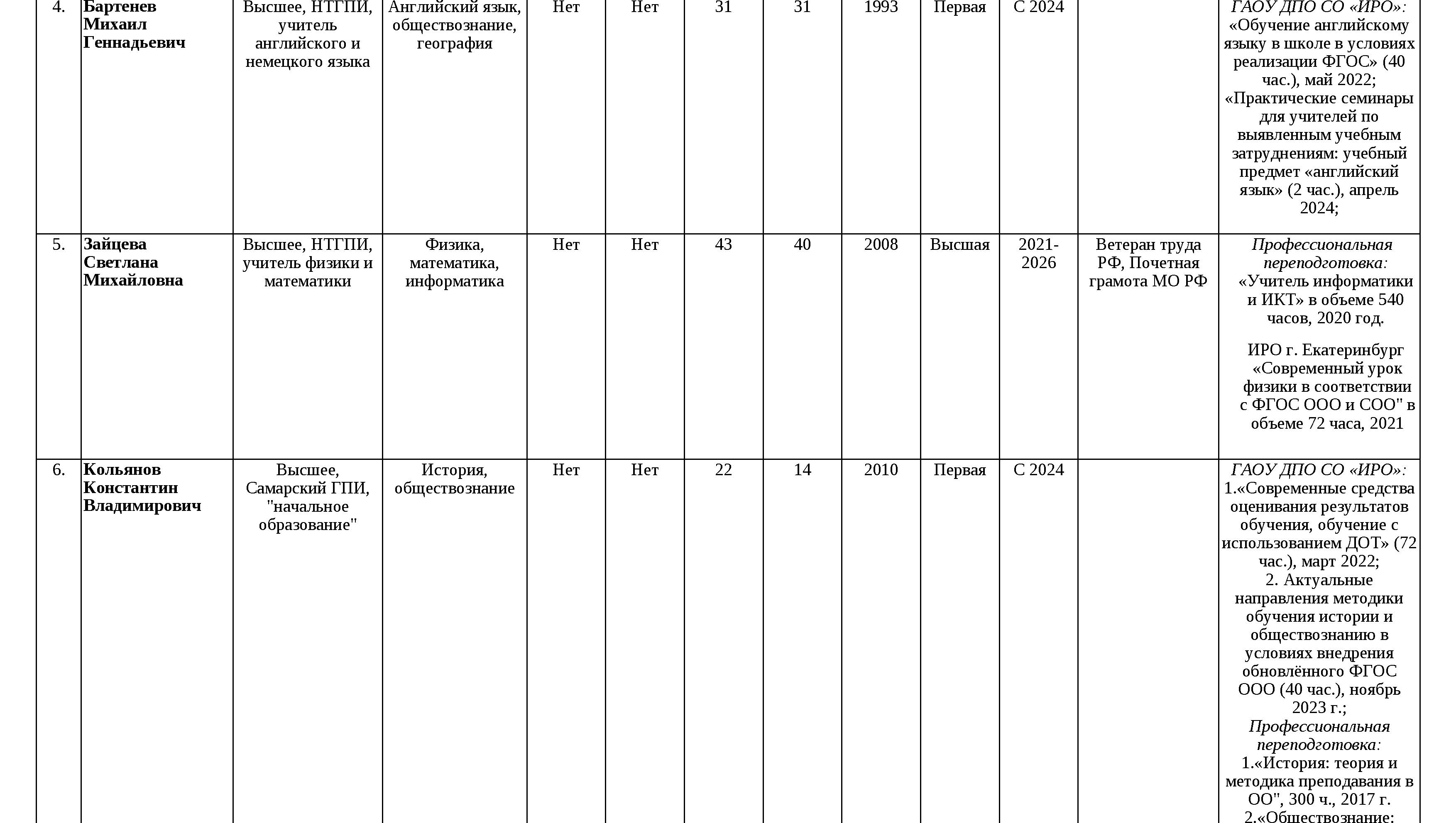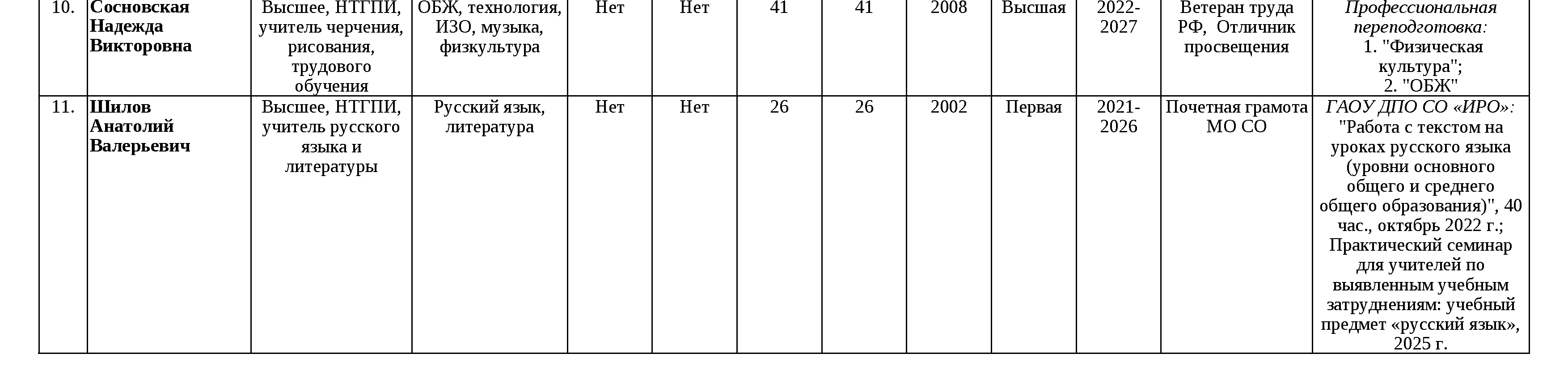 Сведения о педагогических работниках