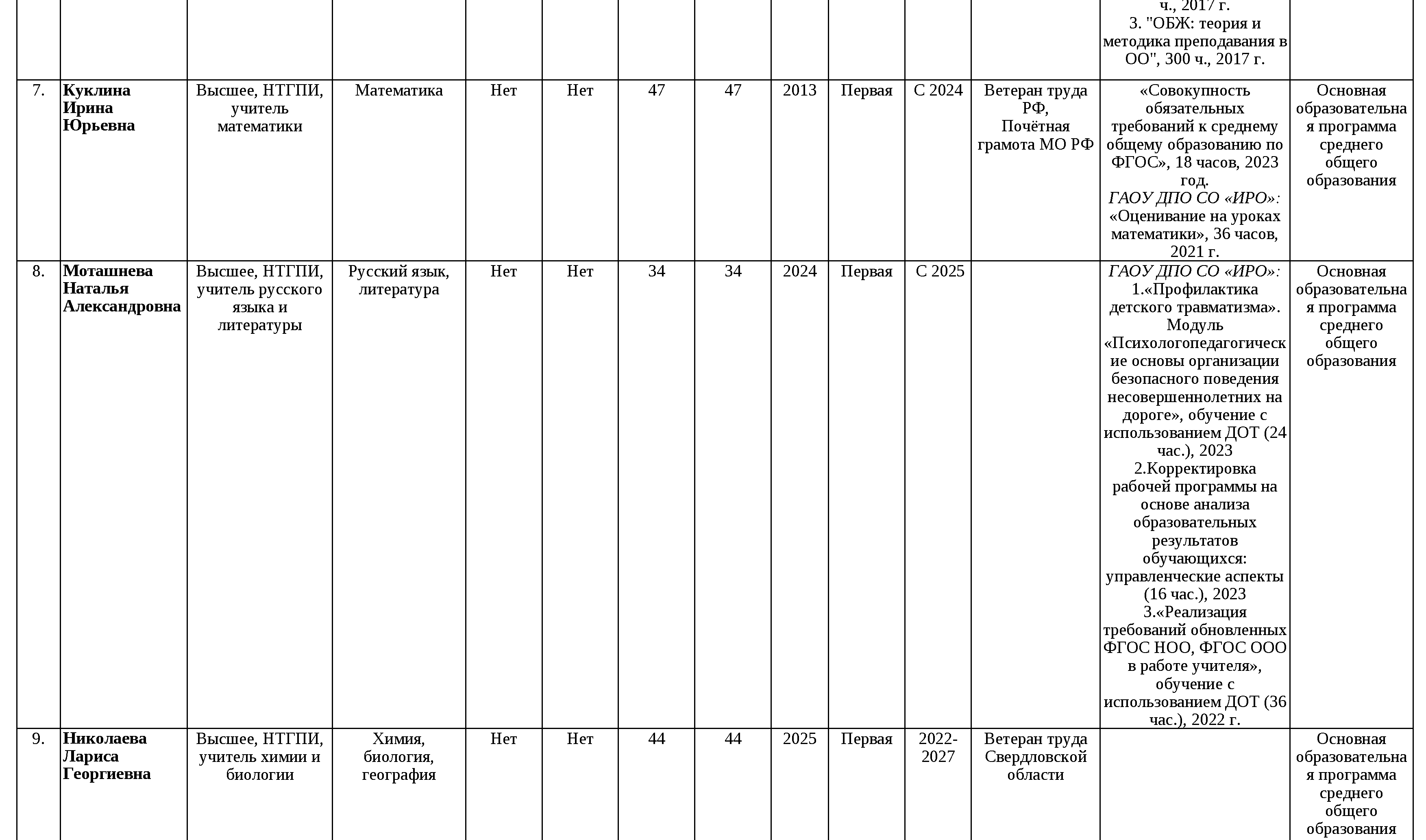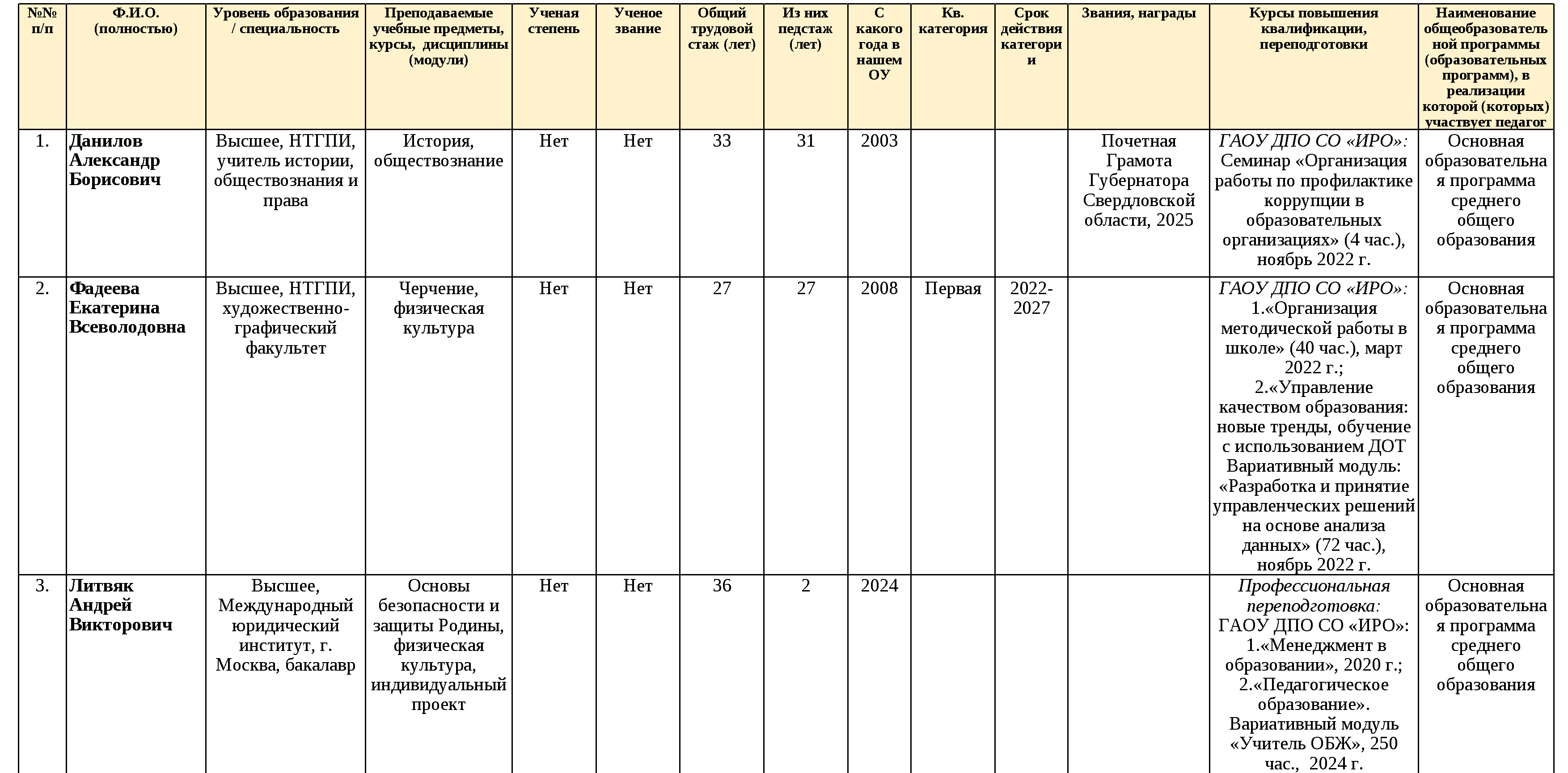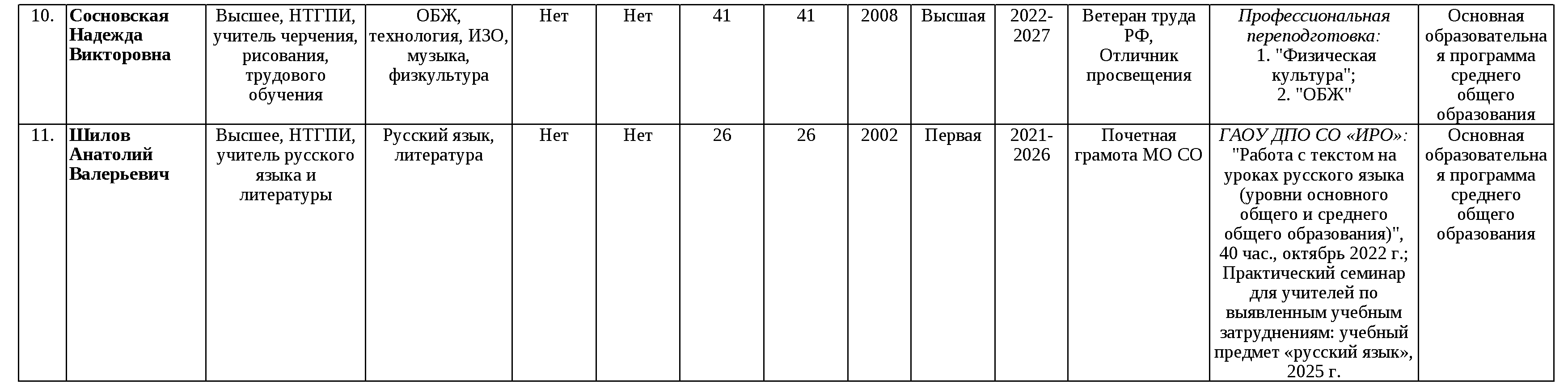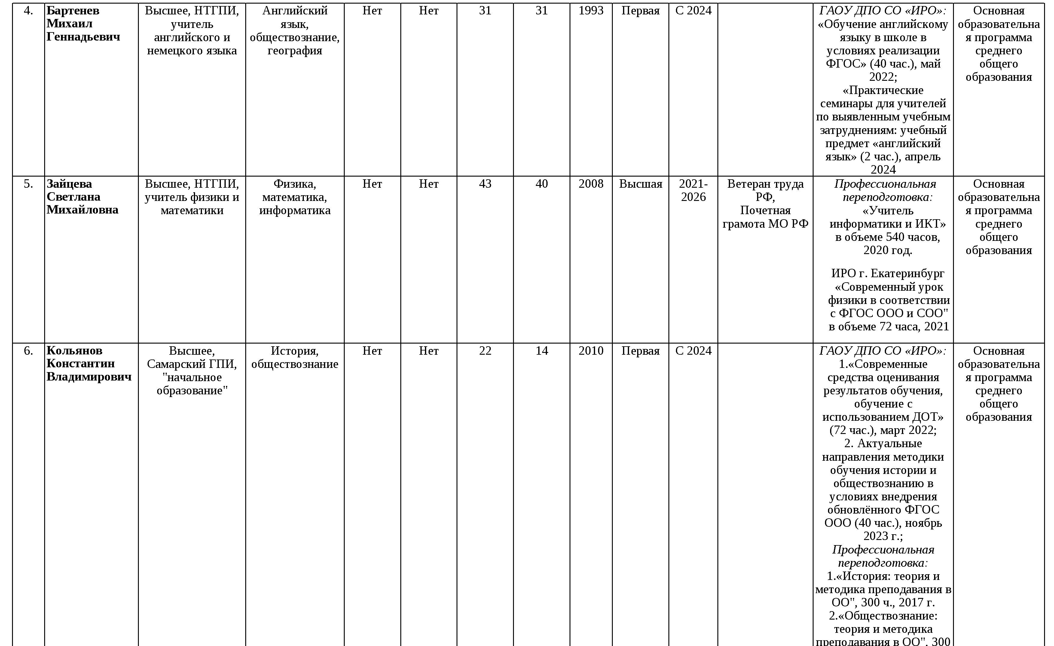 Сведения о педагогических работниках